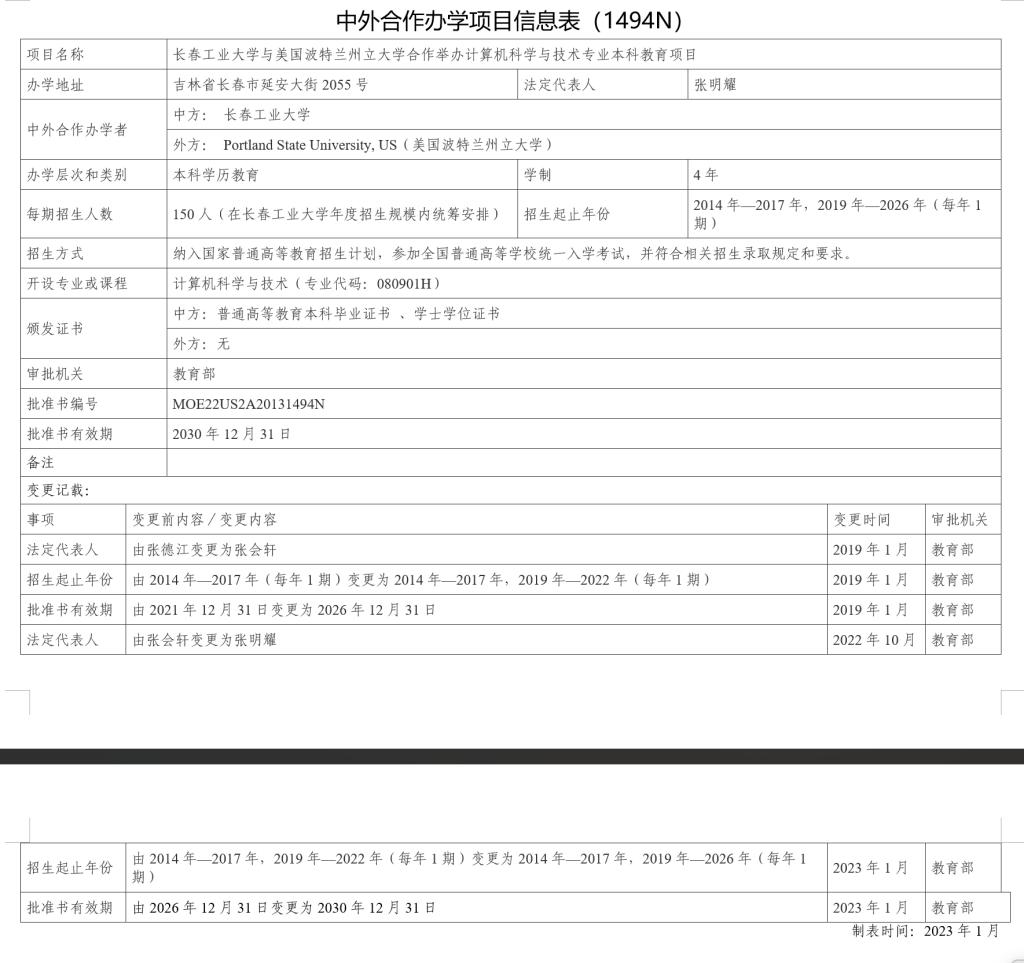 长春工业大学与美国波特兰州立大学合作举办计算机科学与技术专业本科教育项目