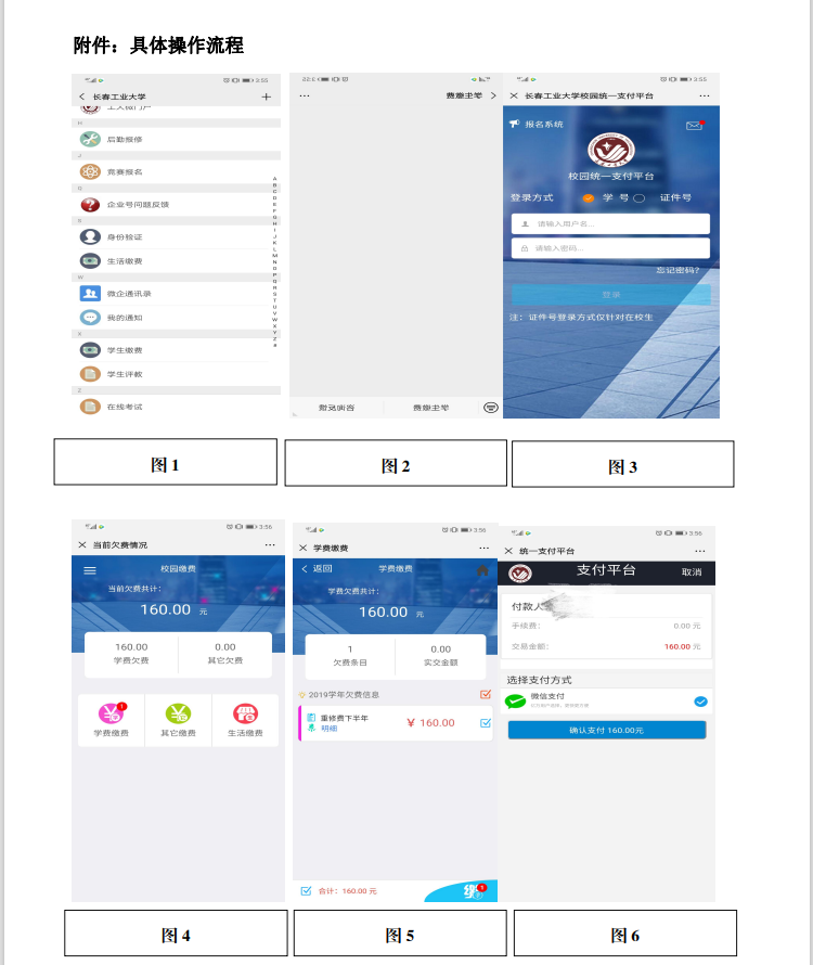 6.微信缴费期间,如遇到点击进入学费缴纳后无缴费信息情况,可咨询财务处收费科,联系方式:0431-85716287;