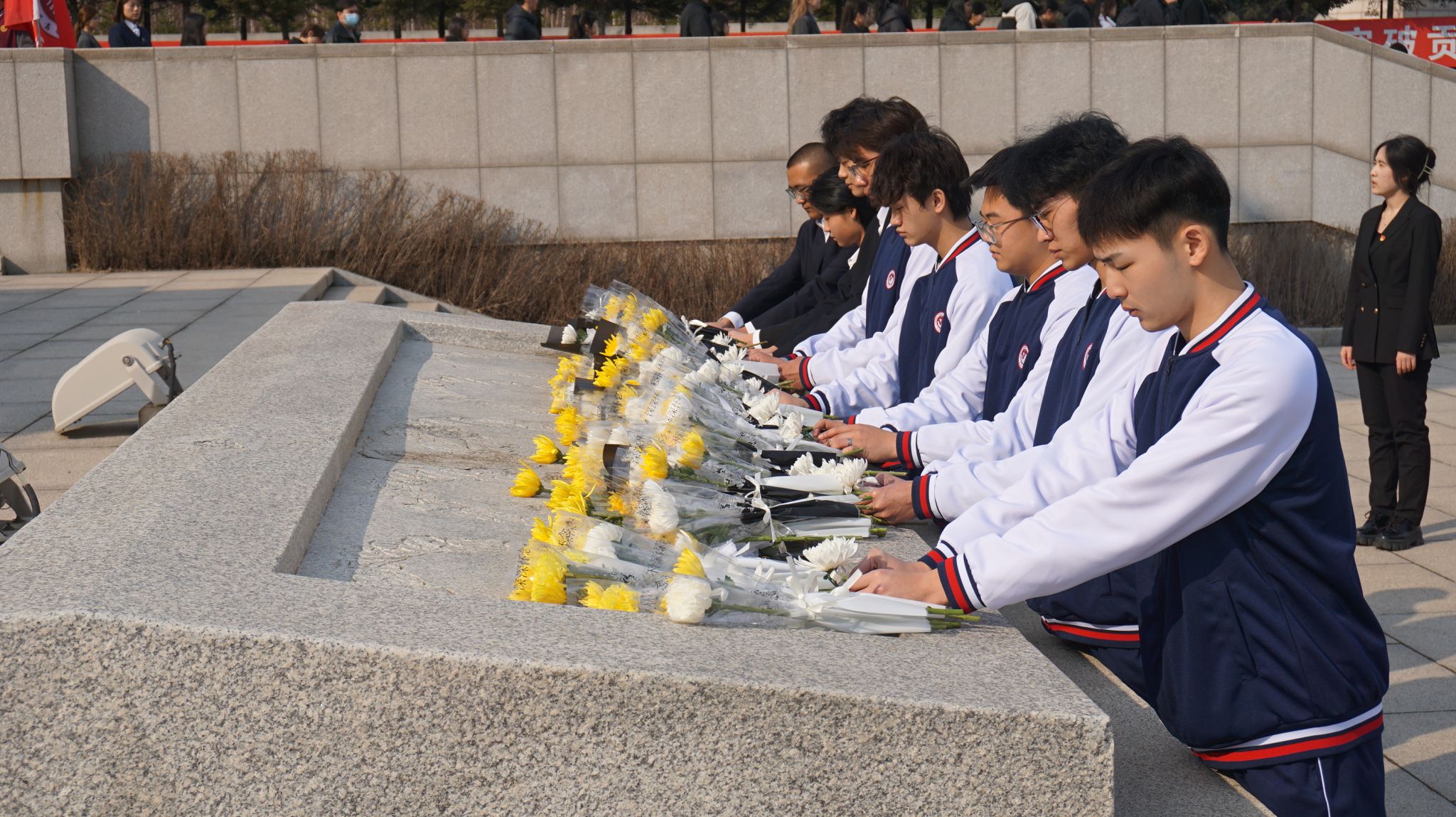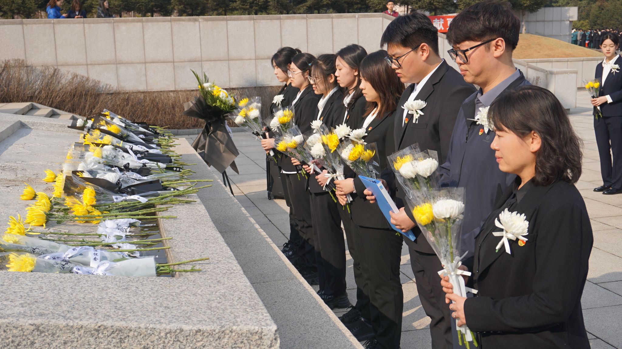 活动伊始,全体成员身着素装,在纪念馆前肃穆列队。在引导员的讲解下,大家依次参观了陈列展区,通过珍贵的文物与照片,重温了革命先烈为民族独立与人民解放浴血奋战的壮烈历史。随后,全体人员默哀三分钟,并依次献上胸花、鞠躬致敬,以无声的仪式表达对英烈的深切缅怀。学生代表在发言道:“先烈们用生命铸就了今日的和平,我们必将以青春之力接续奋斗,不负时代使命。”