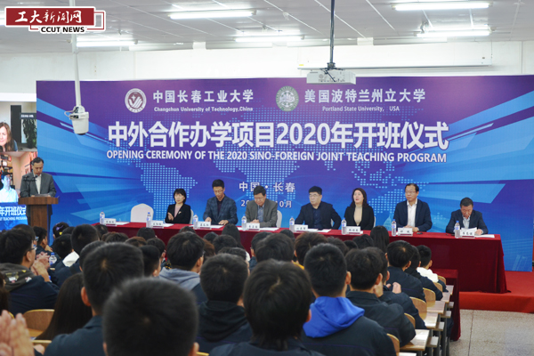 新闻网讯(通讯员 于伟 薛雅轩)10月10日上午,学校与美国波特兰州立大学中外合作办学项目2020年开班仪式在北湖西区举行。副校长李占国、跑得快