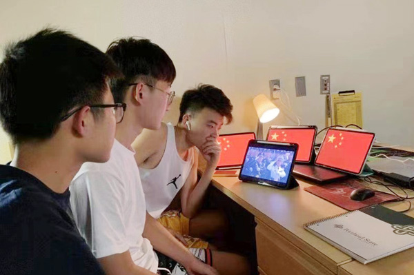美国奥克兰大学海外团支部组织收看阅兵直播盛况