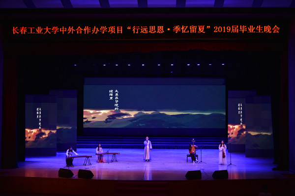 在全场热烈的掌声中,与会领导上台同演职人员合影留念,全体毕业生起立齐唱长春工业大学校歌。晚会主持人、毕业生赵晗宇在“毕业纪念墙”上签名并与老师同学们合影留念,她感慨地说:“这场晚会是对大学四年生活的告别典礼,希望在校的学弟学妹们珍惜现在的大学生活,努力学习,增长才干;希望所有毕业的同学们不忘师恩、情系母校,在今后的工作中踏实敬业、奉献社会、报效国家!”