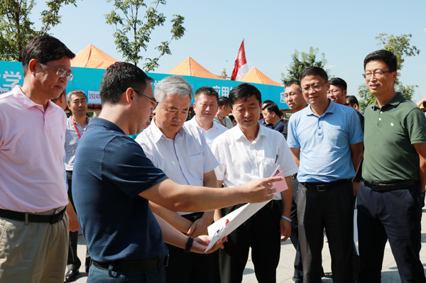 党总支书记胡刃锋、院长姜长泓向党委书记王忠、校长张会轩详细介绍了迎新准备工作及新生报到情况。领导们还与到访的美国波特兰州立大学人员合影留念。