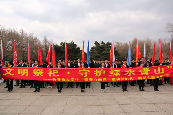 春风志愿者协会等长春市19所高校的21支志愿服务组织,前往南湖公园共同参加“倡导文明祭祀,守护绿水青山”——长春市大学生“青春心向党·建功新时代”主题团日活动。