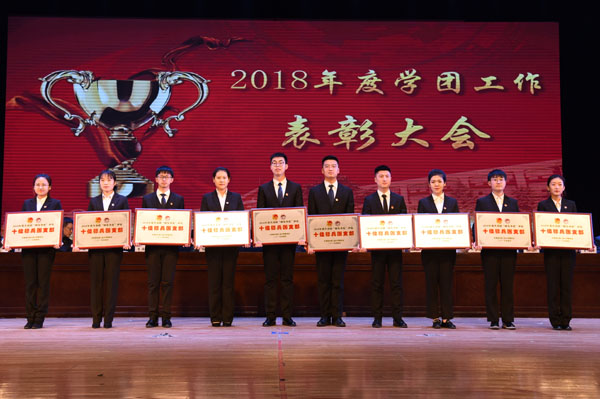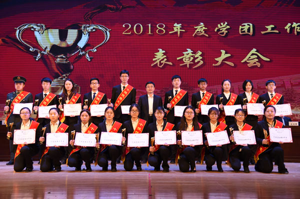 本网讯(通讯员 王权)4月28日,学校在南湖校区大学生活动中心召开2018年度学团工作表彰大会,与会领导为受表彰的集体和个人颁奖。