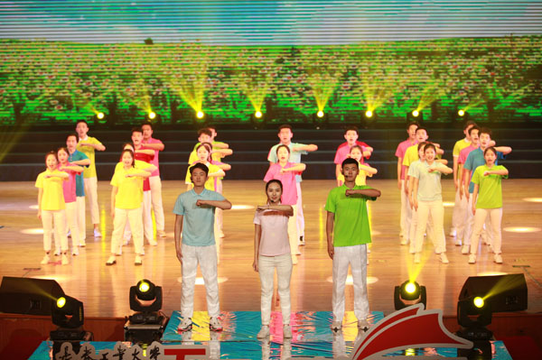 大学生艺术团成员经过近一个月的刻苦排练,参加了音诗画《青春报告》、歌曲联唱《青春“潮”我看》、交响诗《鲜红的旗帜》等节目的演出。