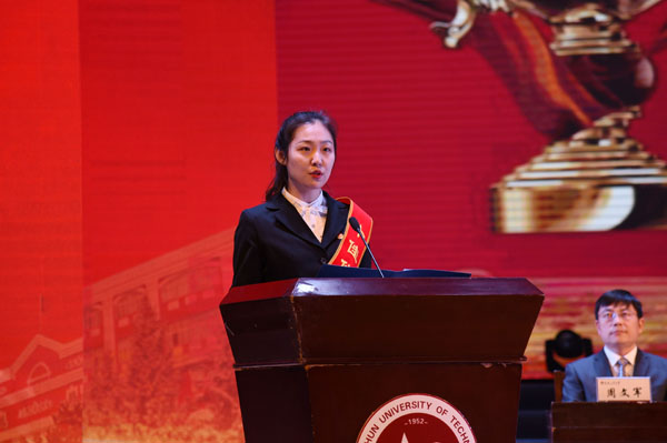 校第二十届“十佳优秀大学生”许嘉纯代表受表彰学生发言
