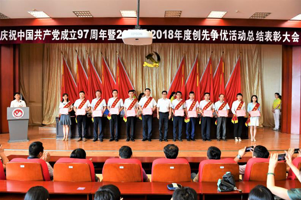 本网讯 6月29日,学校在学术报告厅召开庆祝中国共产党成立97周年暨2016—2018年度创先争优总结表彰大会。校党委书记万春明作重要讲话,党委副书记、校长张会轩主持大会,党委副书记孟雷宣读表彰决定,跑得快 副院长崔高健被授予“优秀共产党员标兵”称号。