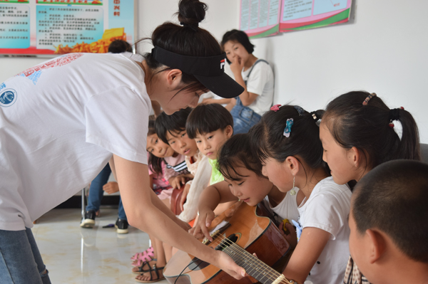 四天时间里,大学生志愿者们热情饱满,给孩子们上诗词赏析、趣味数学和手工绘画课,陪孩子们一起做游戏,教她们唱歌、跳舞,鼓励他们要勇敢、自信,并为孩子们赠送精心准备的礼物。在最后一天的汇报演出中,大学生和小朋友们同台表演了自编自导的文艺节目,展示了大学生的青春风采和小朋友们的阳光童真。丰富多彩的互动活动让村里的孩子们体验和感受到了别样的暑期生活。