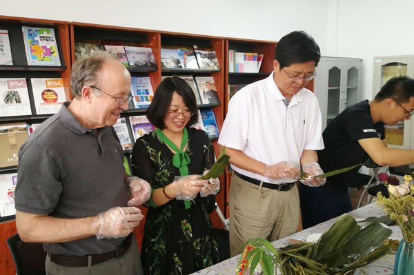 举办迎端午“粽香传真情”包粽子活动。副校长李占国及外籍教师应邀参加,大家一起在欢声笑语中包粽子迎佳节,其乐融融。