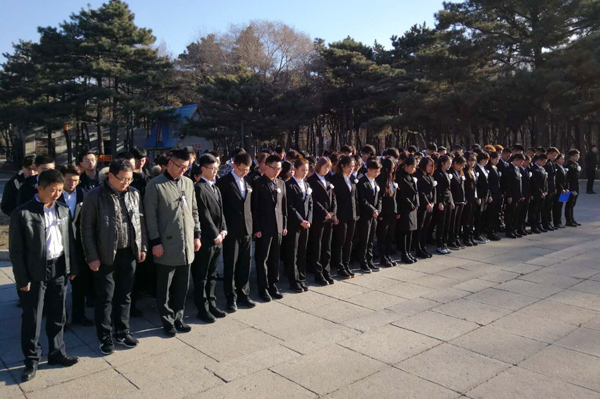 辅导员带领全体学生党员怀着无比激动和崇敬的心情前往南湖公园开展清明祭扫活动。